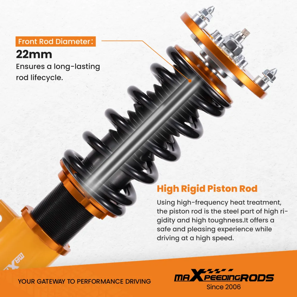 MaXpeedingrods-B3 основаны на регулируемых по высоте койловерах MaXpeedingrods-B2. Они также предназначены для использования на дорогах общего пользования, но 24-уровневая регулировка демпфирования отбоя позволяет точно настроить подвеску под ваши нужды. Вы ощутите улучшенное качество езды в любых дорожных условиях.