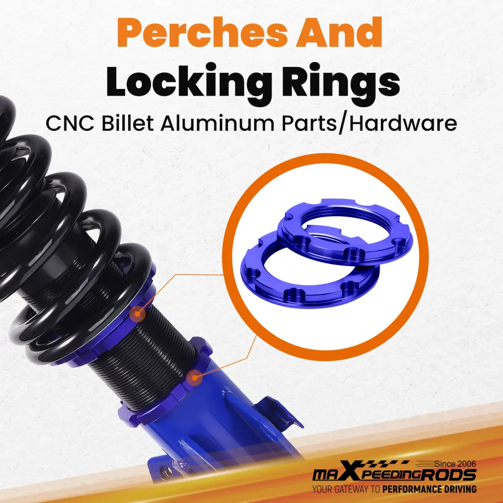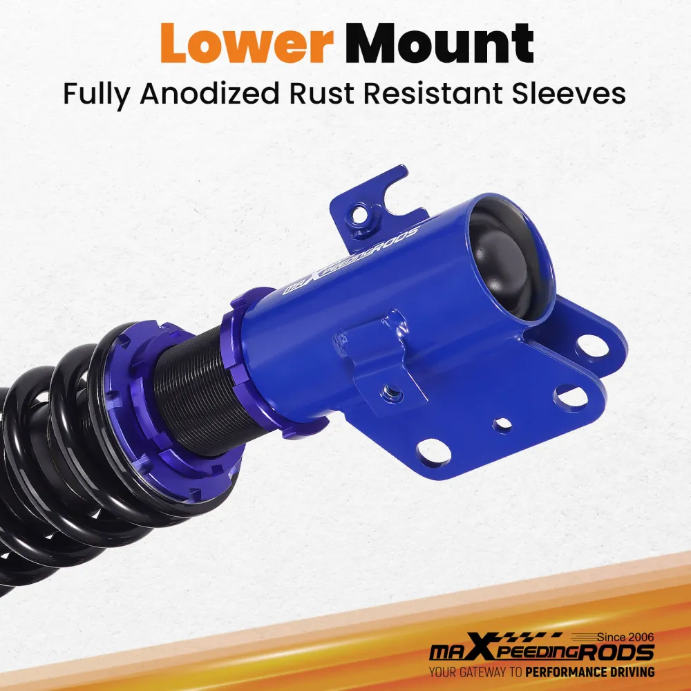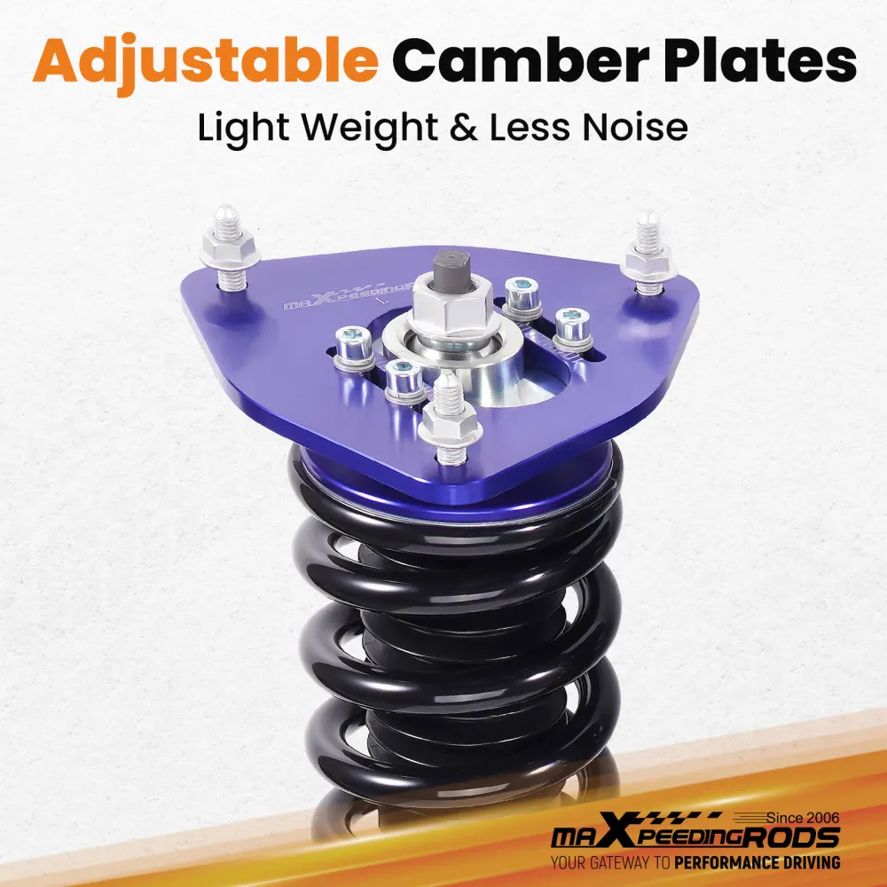 Комплектующие койловеры MaXpeedingrods-B2 разработаны как начальный уровень для использования на дорогах общего пользования. Они оснащены регулируемыми по высоте и регулируемыми по развалу пластинами (подходят для некоторых автомобилей), что обеспечивает заниженную посадку и улучшенные характеристики для вашего автомобиля, используемого в повседневной жизни.