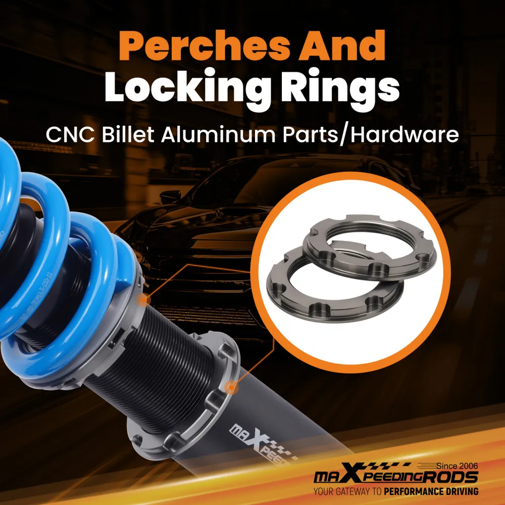 Занижающие койловеры maXpeedingrods T6, стандартно с регулируемым демпфированием отбоя, раздельной регулировкой высоты без изменения предварительной нагрузки, разработанным демпфирующим маслом и модернизированными гоночными пружинами, регулируемой пластиной развала (для некоторых автомобилей) и привлекательным внешним видом, предоставляют вам больше возможностей для настройки подвески в соответствии с требованиями производительности и придают вашему автомобилю более впечатляющий вид. Кроме того, все наши койловеры собираются на беспыльном заводе, что обеспечивает высокое качество и длительный срок службы.