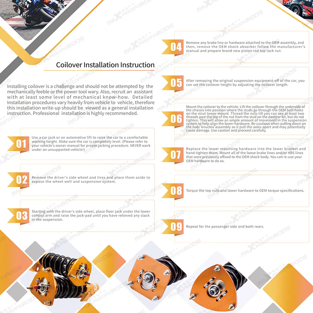 Внимание: Поскольку это высокопроизводительные койловеры, для некоторых автомобилей может потребоваться некоторая доработка.