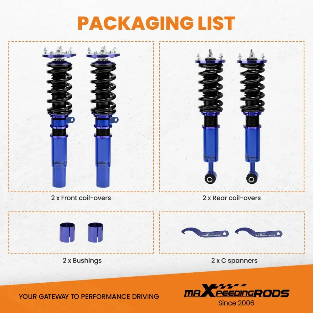 комплект койловеров для двух передних и двух задних колес; пара ключей для регулировки высоты.