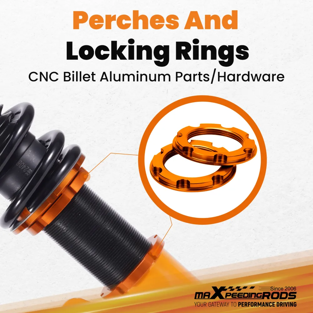 - Регулируемые койловеры имеют 24 положения регулировки. Регулировка отбоя и демпфирования позволяет пользователю настроить койловеры под любые условия вождения. Пользователь может наслаждаться комфортной ездой в любых дорожных условиях.