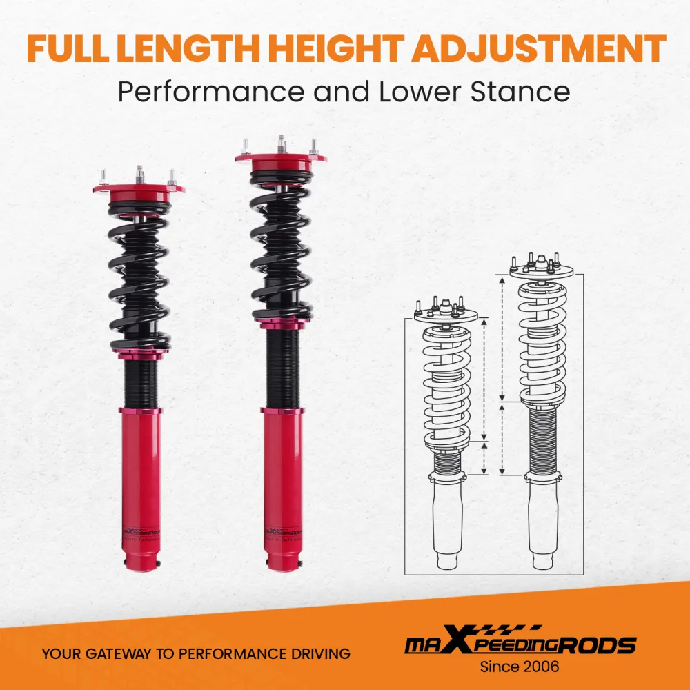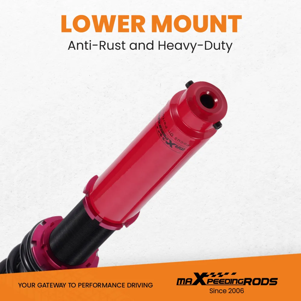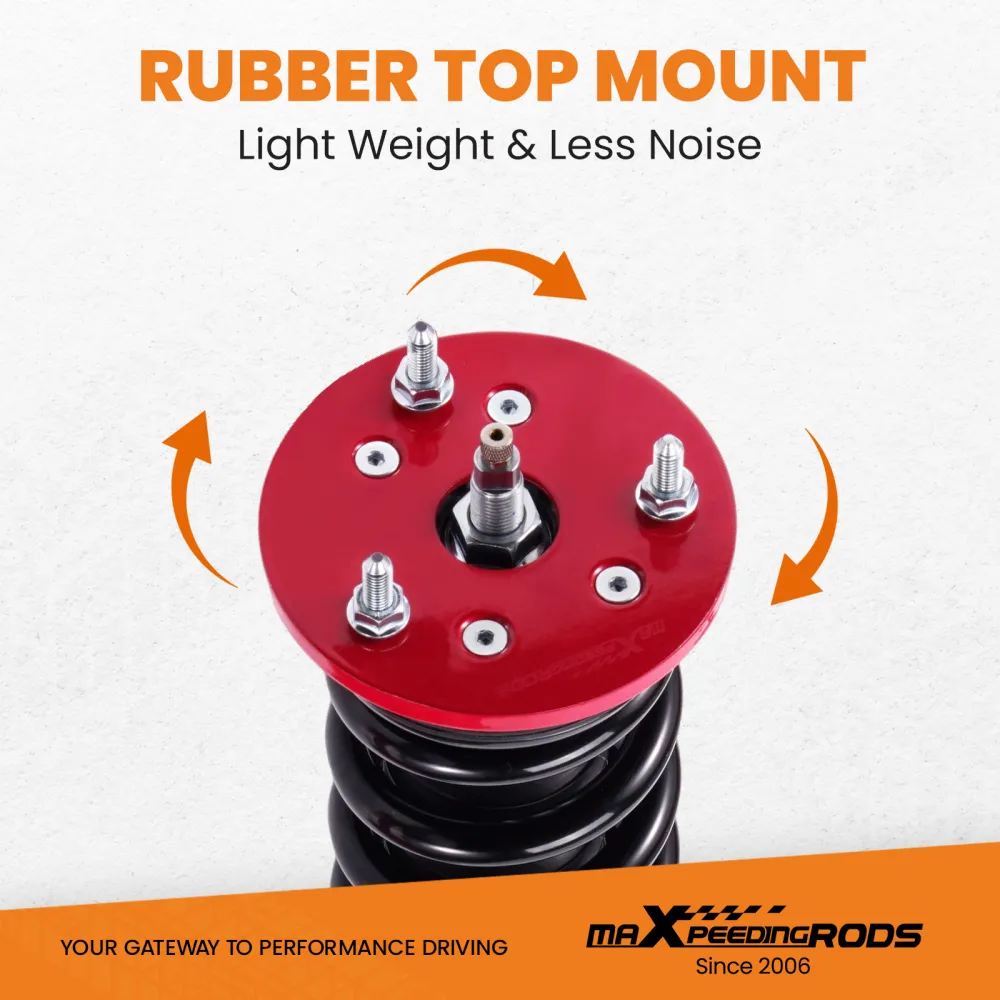 Уличные койловеры Maxpeedingrods разработаны для всех автолюбителей, желающих получить превосходную управляемость без ущерба для комфорта. Эта система подвески идеально подходит для повседневной езды и периодического использования на треке в лёгких условиях. Для обеспечения долговечности и стабильности используются высококачественные компоненты. Каждая система проходит полную проверку на соответствие размерам и дорожные испытания, чтобы гарантировать нашим клиентам идеальные характеристики и комфорт.