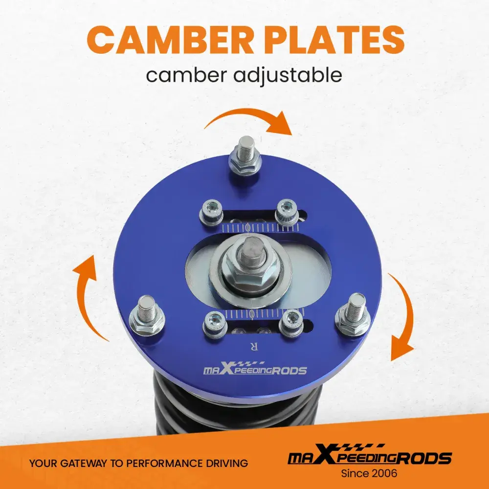 6. Верхние опоры с пластинами развала колес устраняют необходимость в отдельном комплекте для регулировки развала колес.